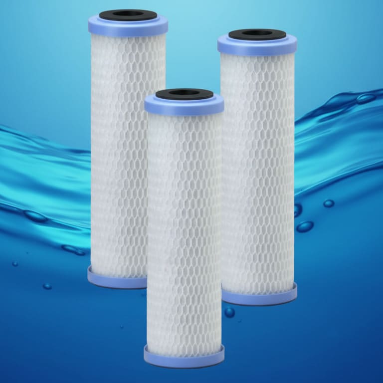 Práctico Filtro o Cartucho con fibra de filtración, contiene Carbón Activado en Bloque fabricado con cáscara de coco y/o maderas especialmente escogidas para tal fin.